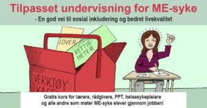 Gjennom dette gratis kurset på ca. 1 ½ time vil en få nettopp dette. Kurset består av et foredrag med gjennomgang av informasjonsmateriell og viktig kompetanseoverføring som gir deg redskapene du trenger for å kunne forstå og imøtekomme ME-syke elevers behov.